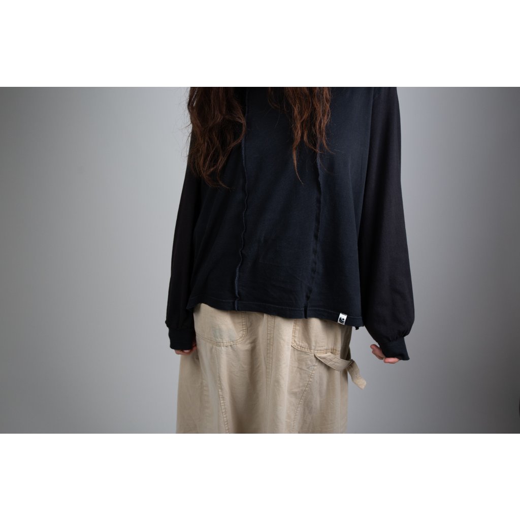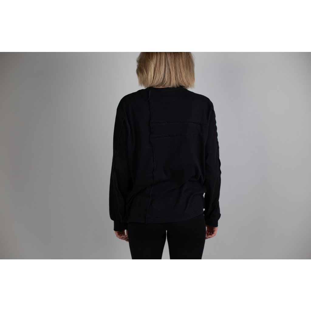 Effortless and versatile, this oversized T-shirt is designed for everyday comfort with a subtle edge. It is created from second-hand materials in collaboration with Textile-Eco Boskovice a.s. There we get cotton clothing others had no use for, cut them up and patchwork them in unique combination to create the Melange Long Sleeve.