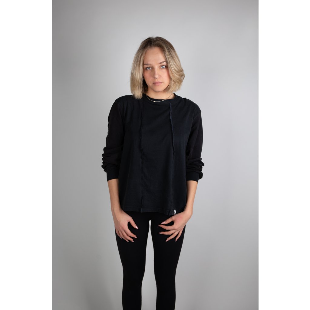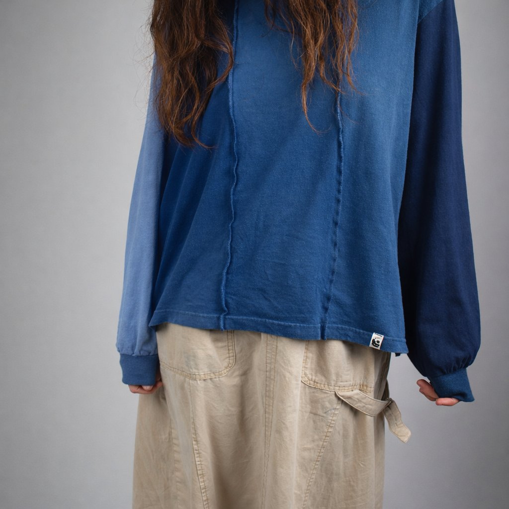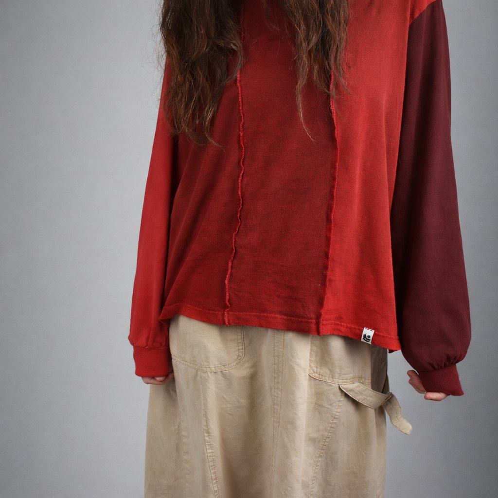 Comfortable oversized long sleeve T-Shirt designed to allow you to move freely. Upcycled from patchworked breathable cotton, it features exposed vertical seams on the front for a unique, handcrafted look. The loose fit and dropped shoulders make it easy to layer or wear on its own, so you can rock it in the gym, on the rocks or just on a casual hangout in a city.